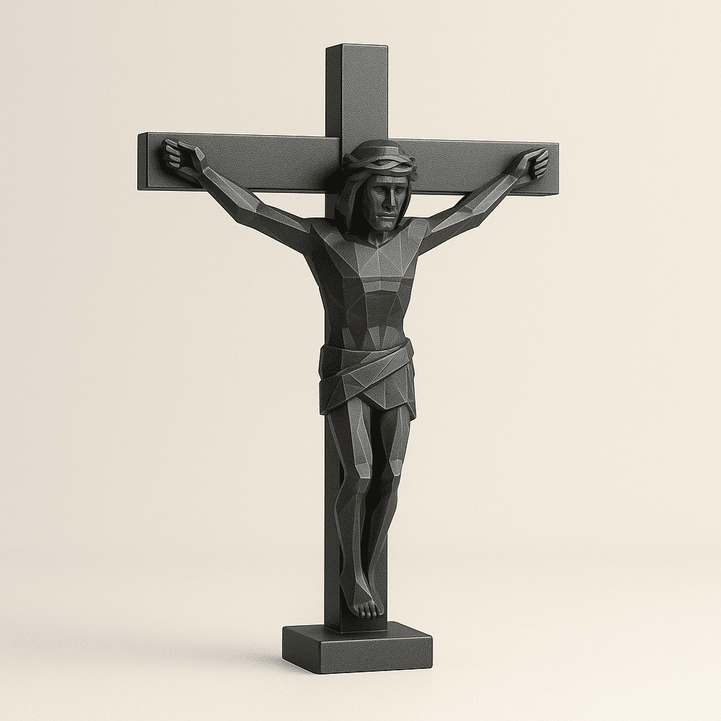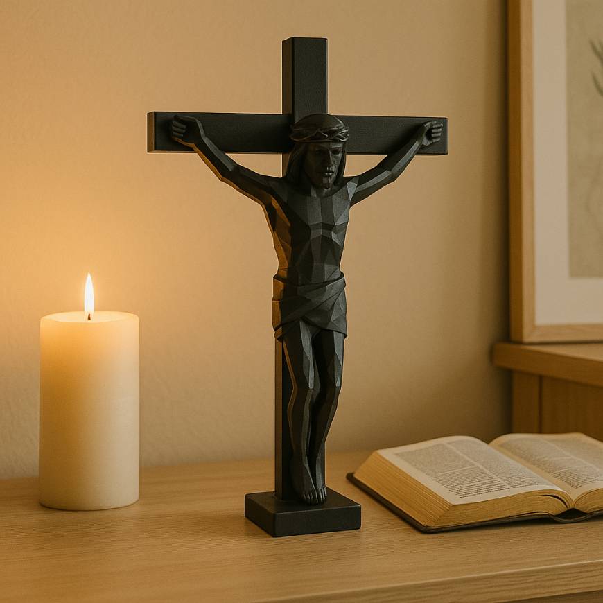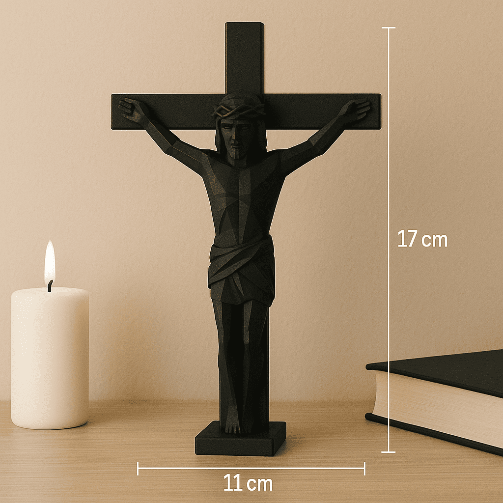 Crucifixo Jesus na Cruz 3D PLA Preto 17x11cm